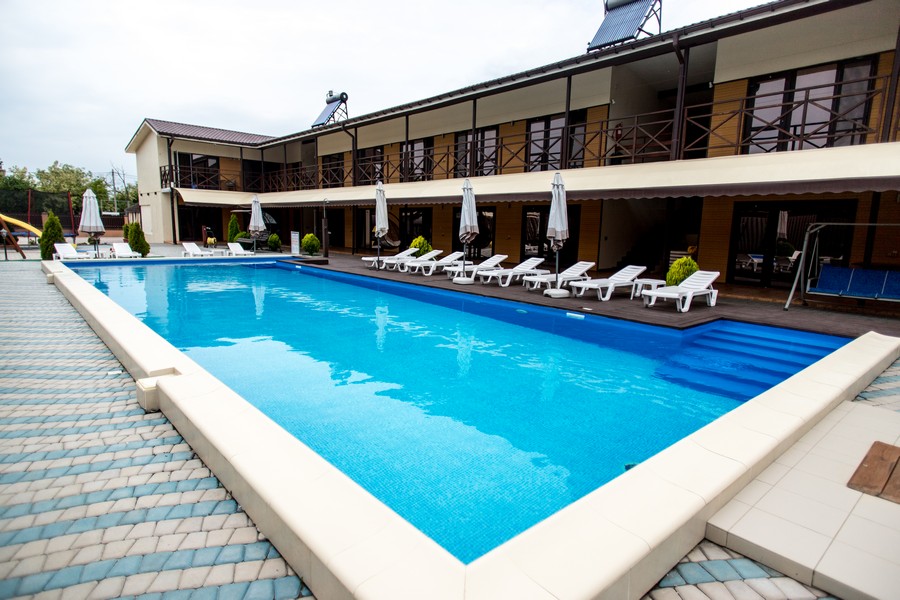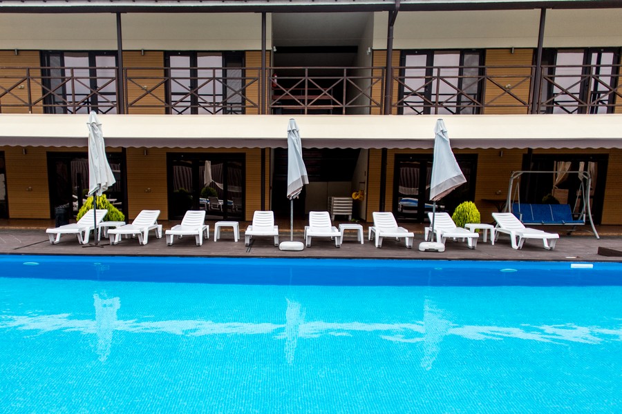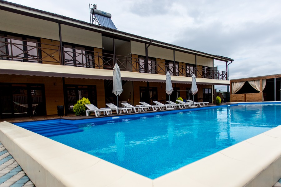 Фотографії курорту Приморське, бази відпочинку «Аквамарін». Фото басейну, кафе, номерів, території бази відпочинку «Аквамарін» курорту Приморське Кілійського району Одеської області.