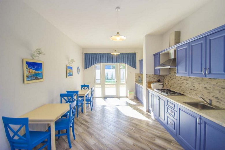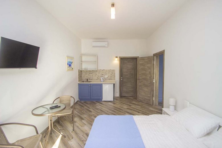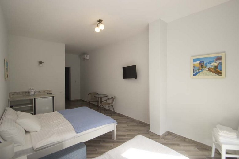 Причини вибрати 1 Тихе, спокійне місце відпочинку 2 Одно-, двокімнатні номери з усіма вигодами 3 Кухня для самостійного приготування 4 Декілька хвилини ходьби до пляжу 5 Зона відпочинку з альтанками, мангом Опис Номери Фото Фотогалерея