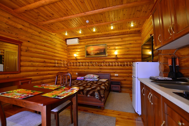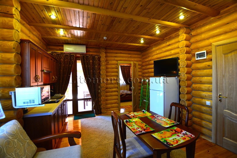 Номери в дерев'яних котеджах із кухнею. Окремий вхід у номер