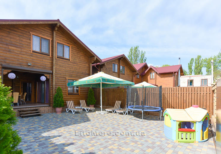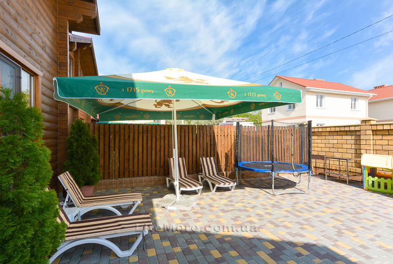 На курорте Грибовка дом расположен на берегу моря, с территории есть выход на пляж. Фото территории коттеджа у моря в Грибовке, номеров, кухни, территории...