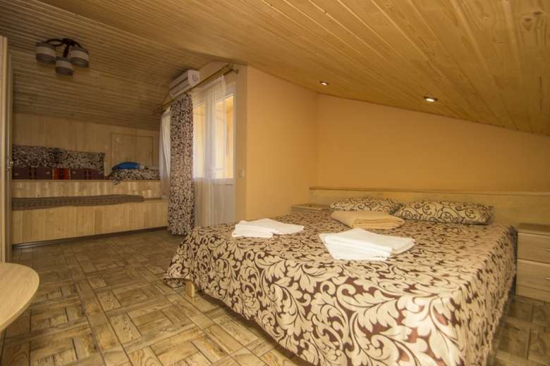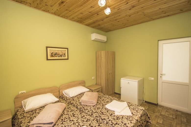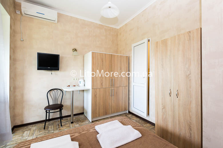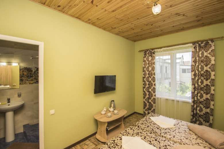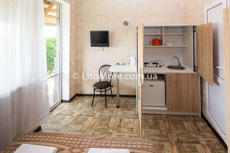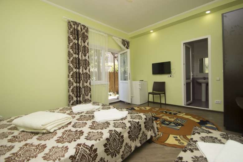 Причини вибрати 1 Готель в Кароліно-Бугазі знаходиться біля моря 2 Своя закрита простора територія з виходом на пляж 3 Є кухня для самостійного приготування їжі 4 Сучасні комфортні номери з терасами 5 Зона відпочинку з терасою, мангом Опис Номери Фото Фотогаллерея